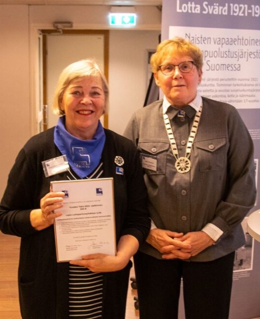 Suomen Lottaperinneyhdistys on myöntänyt Vuoden Teko 2024 -palkinnon Lapin Lottaperinneyhdistykselle. Tunnustuksen vastaanotti yhdistyksen puheenjohtaja Marja-Leena Laitinen Lottaperinneliiton liittokokouksessa Porissa. Lottaperinneliitto on palkinnut Lapin Lottaperinneyhdistyksen Vuoden Teko -palkinnolla. 500 euron tunnustus myönnettiin lottakerhotoiminnan idean saattamisesta valtakunnalliseksi toimintamalliksi. Tunnustuksen perusteissa Lapin toimintaa kiiteltiin muun muassa siitä, että Lapissa on toteutettu lottien toive olla yhdessä, muistella lottatyötä, saada tukea arjessa pärjäämiseen ja vähentää yksinäisyyttä. Lapin onnistuneen pilotti/kokeilutoiminnan ansiosta Lapin Lottaperinneyhdistys sai kerhotoimintaan Lotta Svärd Säätiön tuen. Myöhemmin toimintamalli on vakiinnutettu kaikkien jäsenyhdistysten mahdollisuudeksi toteuttaa kerhotoimintaa. Marja-Leena Laitinen valittiin jatkamaan Lottaperinneliiton hallituksessa, Hilkka Naakka toimii varajäsenenä.